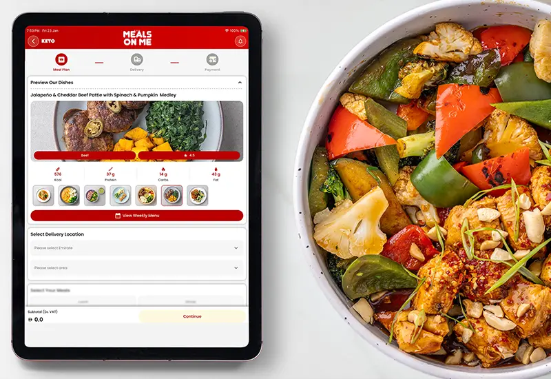 Meals on me! We are the ultimate destination in Dubai for a convenient and affordable keto meal plan. Also we meticulously designed our keto meal plan to keep you on track with your diet goals. We recognize the significance of following a low-carb, high-fat diet in order to achieve ketosis and its numerous health benefits. Meals on Me allows you to enjoy great keto meals without the burden of meal preparation.